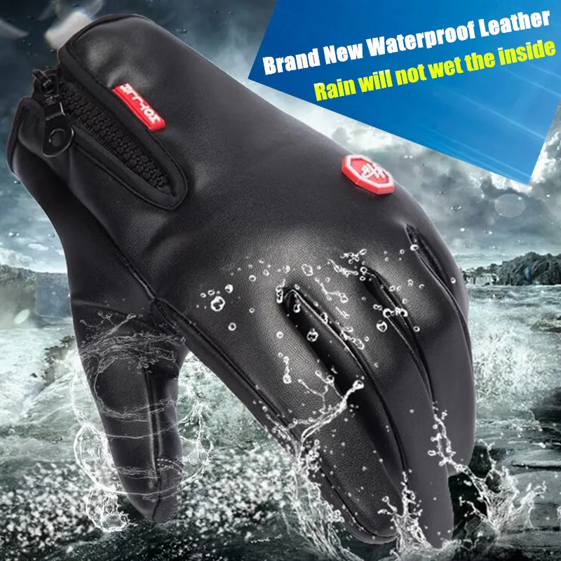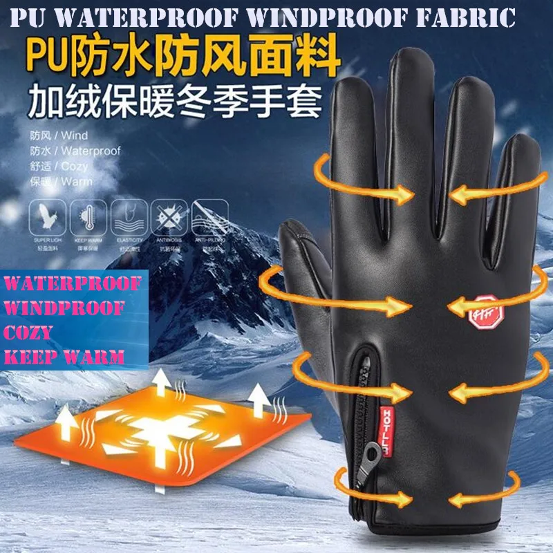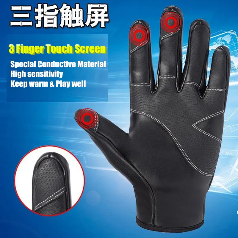 Product Name: 200 زوج الراقية للجنسين الشتاء الدافئة يندبروف مقاوم للماء بولي Leather قفازات جلدية ، الذهب المخملية نيري ، عدم الانزلاق ، 3 إصبع قفازات شاشة لمس