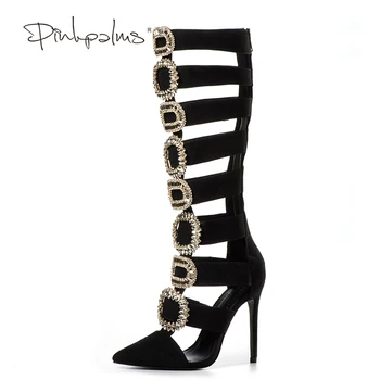 Special Offer العلامة التجارية الوردي النخيل النساء الصيف الشتاء أحذية عالية الكعب وأشار اصبع القدم الصنادل المرأة حذاء من الجلد الكريستال الماس مثير الن... Discount 0% Today!