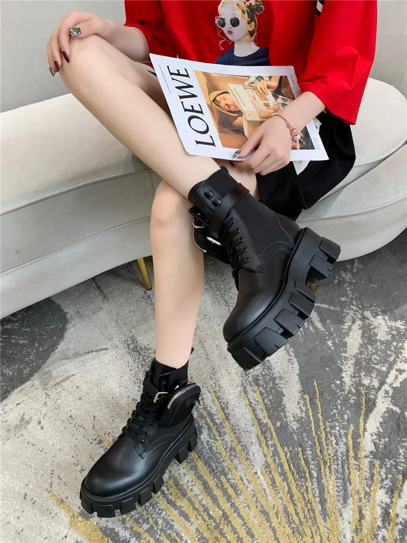 Product Name: شخصية أحذية النساء الكعك سميكة القاع عائلة جديدة النمط البريطاني دراجة نارية أحذية بوت قصيرة مع في الخريف و