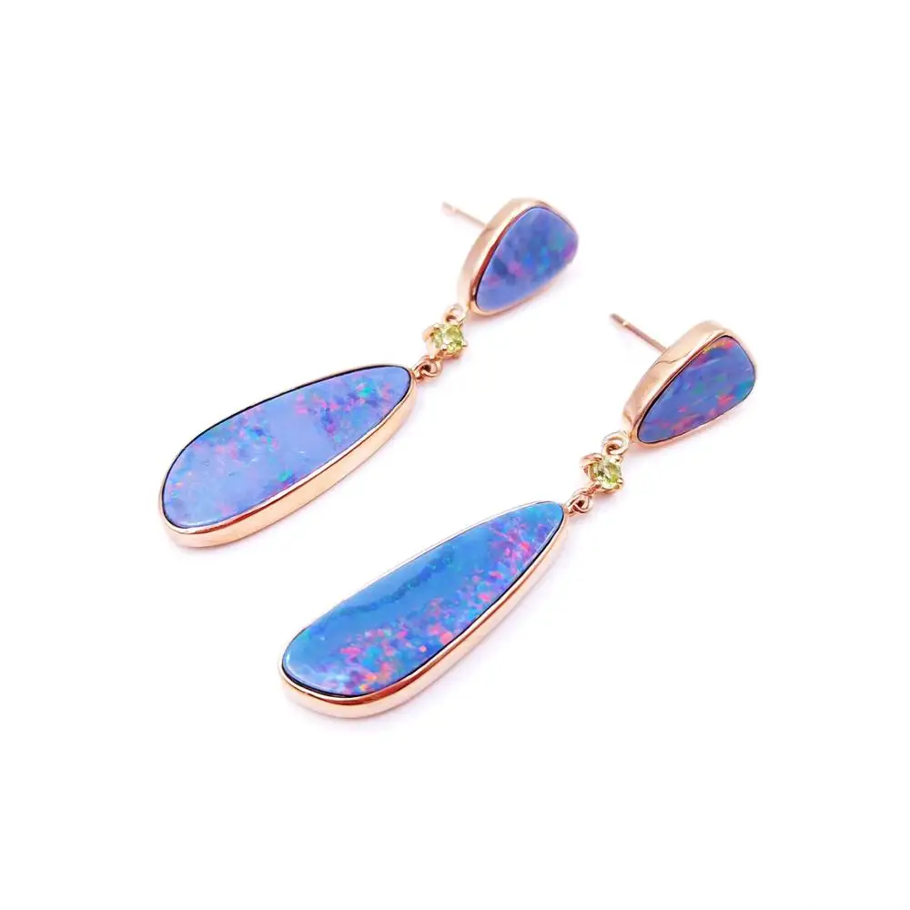 Special Offer Lii Ji حقيقية الاسترالية بولدر أوبال الزبرجد الأقراط الطويلة 18K ارتفع الذهب Au750 أقراط فريدة من نوعها Discount 8% Today!