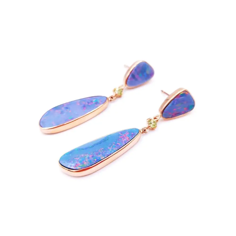 Product Name: Lii Ji حقيقية الاسترالية بولدر أوبال الزبرجد الأقراط الطويلة 18K ارتفع الذهب Au750 أقراط فريدة من نوعها