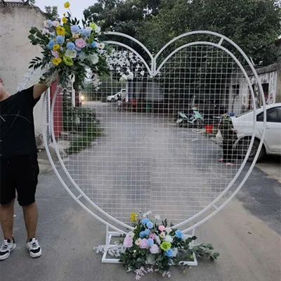 Product Name: زينة لحفلات الزفاف بقوس دائري مربع وقلب شبكي من الحديد المطاوع سلك فراخ بالونات خلفية للتزيين