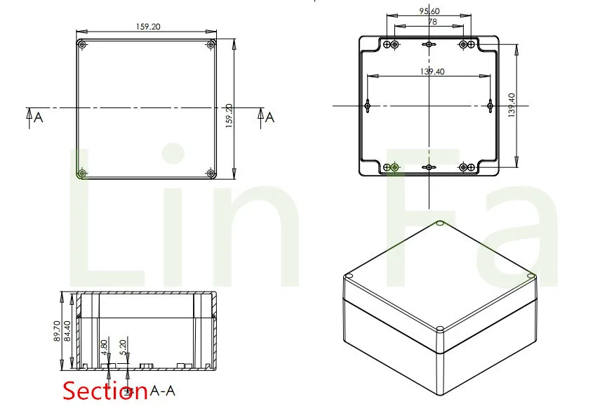 Product Name: علبة توزيع إلكترونيات إلكترونية بلاستيكية (100 قطعة) 160*160*90 مللي متر صندوق علامة تجارية عالية الجودة مرفقات إلكترونية لصندوق توزيع Pcb