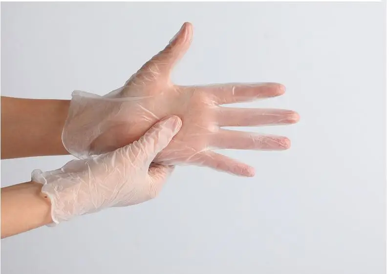 Product Name: قفازات الفينيل 100 قطعة/صندوق قفازات يمكن التخلص منها خالية من مسحوق الغذاء الصناعي سلامة شفافة قفازات النتريل البلاستيكية