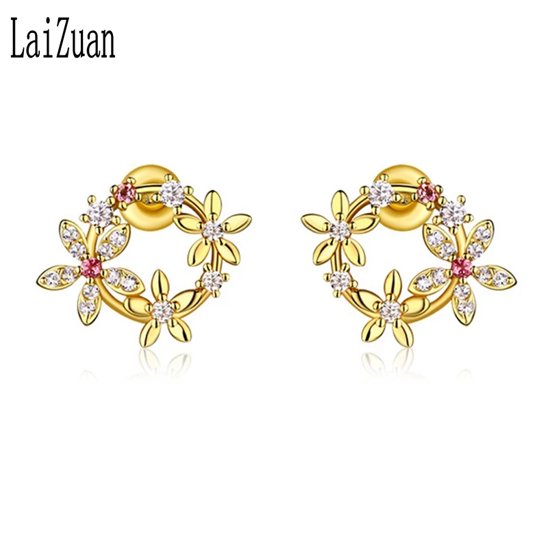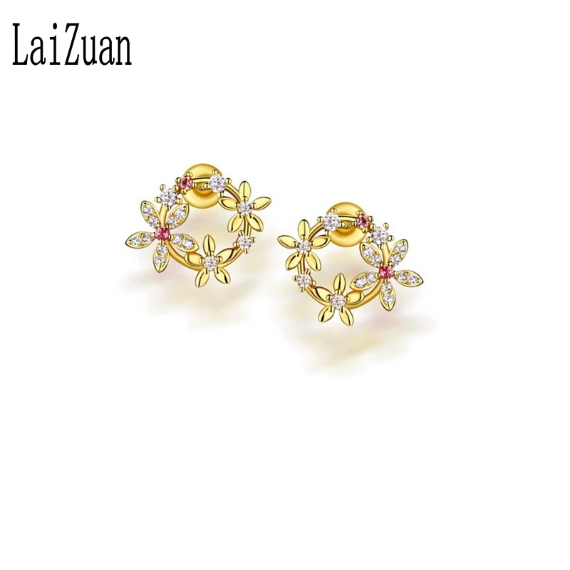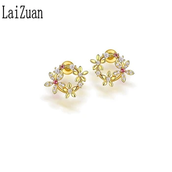 Special Offer LaiZuan الصلبة 14k الذهب الأصفر المرأة فريدة قرط الاذن المرصع للنساء 100% الماس الطبيعي النساء رومانسية الذكرى مجوهرات حفلة Discount 30% Today!