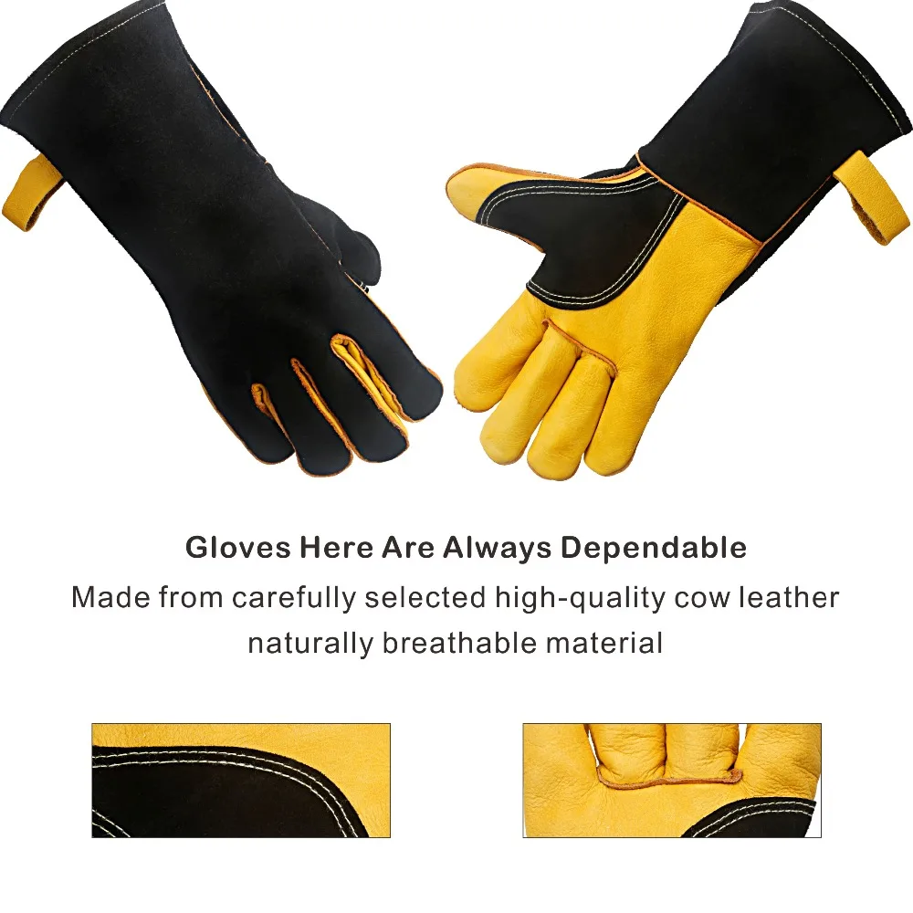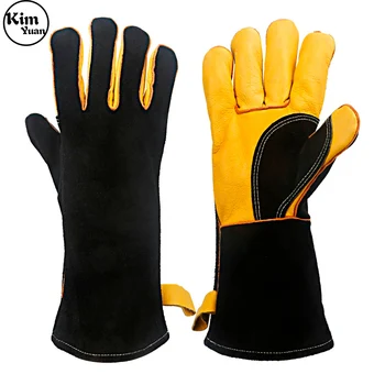Product Name: كيم يوان 10 زوج 040 قفازات لحام من الجلد-الحرارة/مقاوم للحريق ، ل حام/فرن/الموقد/الحيوان المناولة/شواء-البني 14in