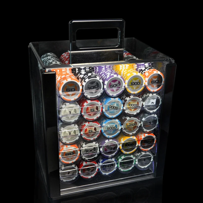 Product Name: 600,1000 قطعة/الوحدة ABS بوكر رقائق مع ستار التشذيب ملصق جديد كازينو تكساس هولدم القمار بوكر رقاقة مجموعات مع صندوق الاكريليك