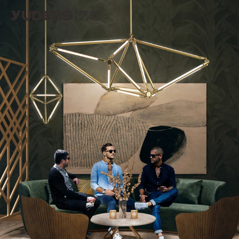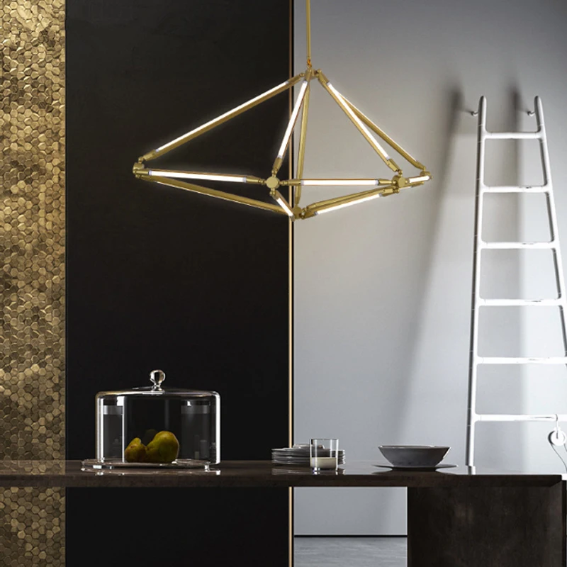 Product Name: ما بعد الحداثة الحد الأدنى الذهبي معدن مطلي الثريا الشمال الإبداعية قابل للتعديل غرفة المعيشة الديكور DIY بها بنفسك T5 مصباح ليد
