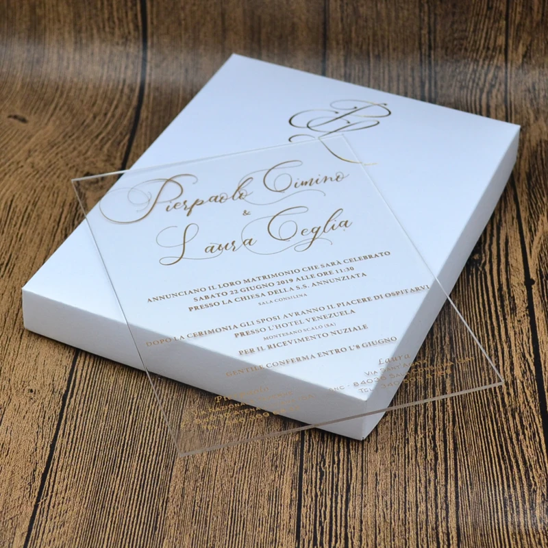 Special Offer جديد المنتج عالية الجودة الأكريليك الذهبي الزفاف دعوة بطاقة مع الذهب احباط علبة كرتون Discount 0% Today!