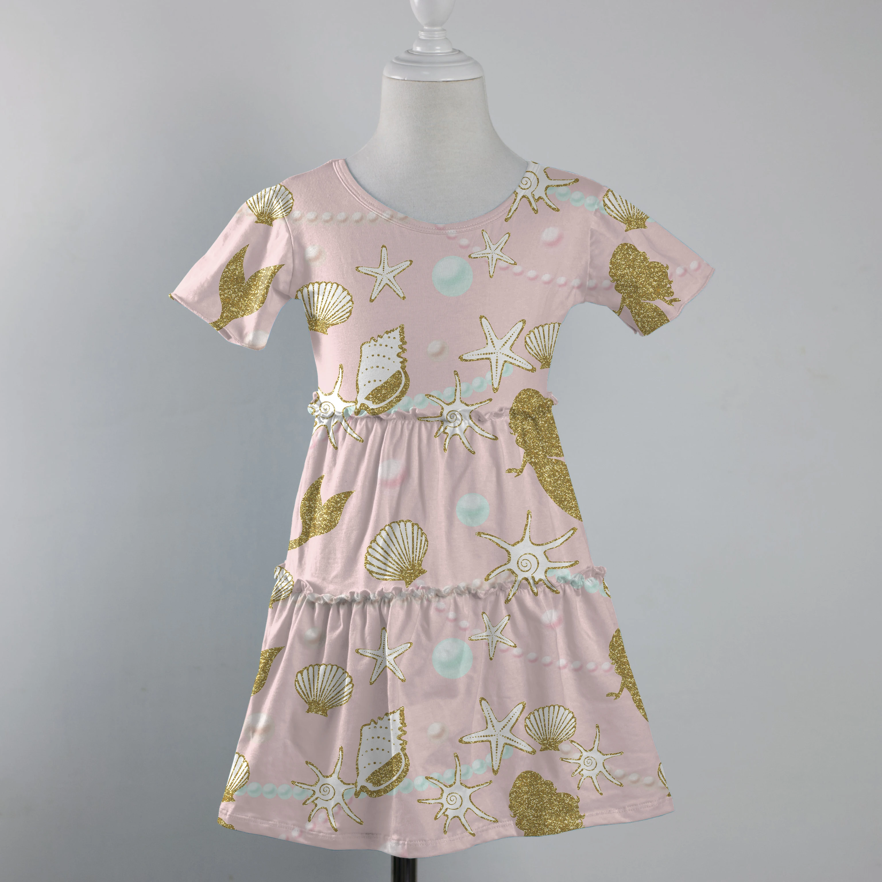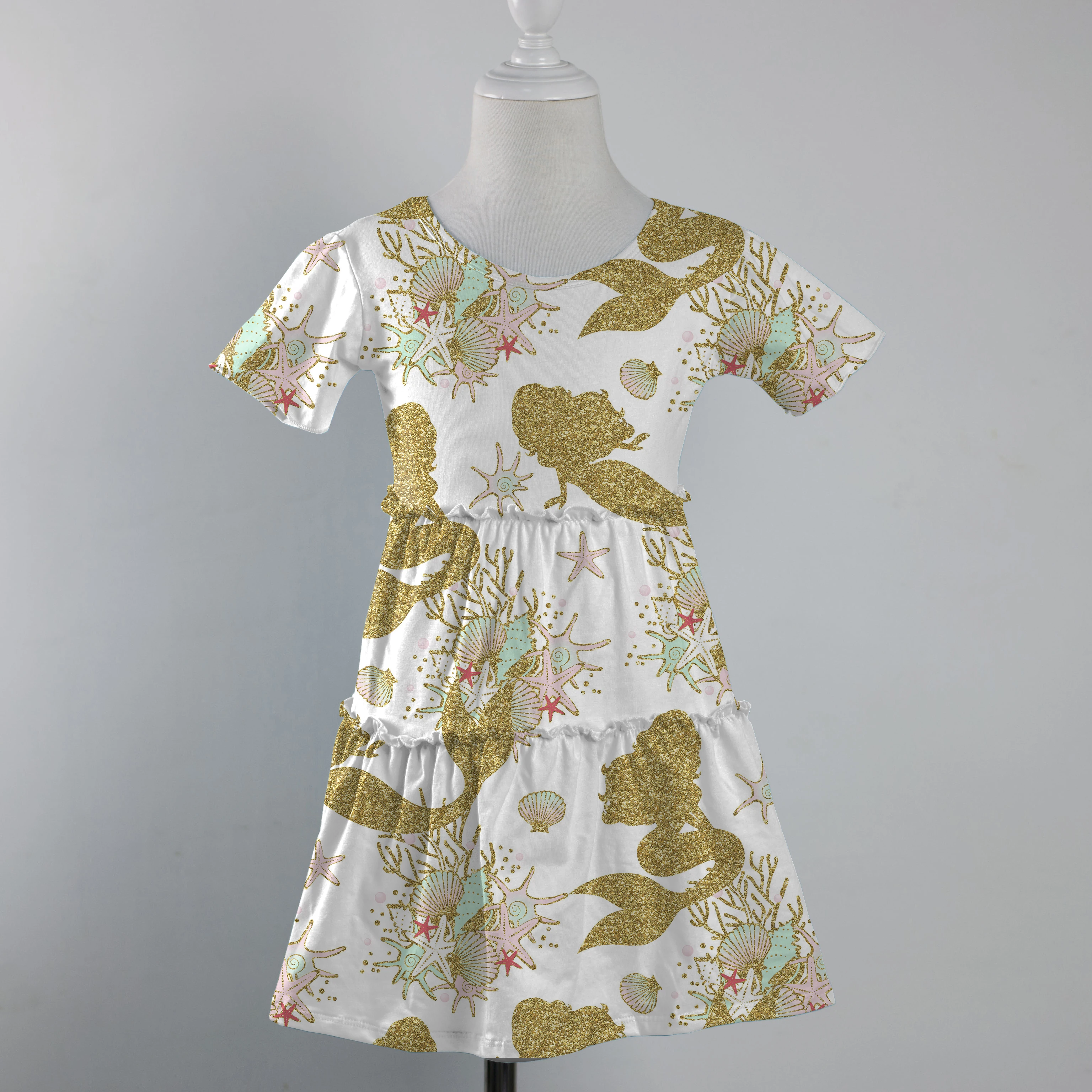 Product Name: الربيع الصيف القطن الحليب الحرير الطفل الفتيات كم بوتيك الأطفال ملابس القطن فستان حورية البحر مقياس الأزهار الكشكشة طول الركبة