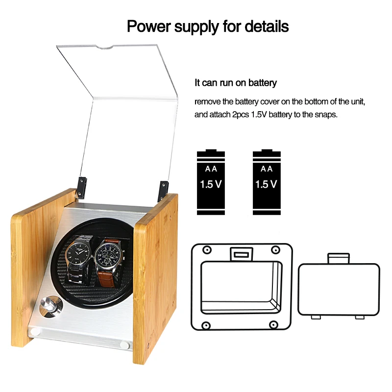 Product Name: مزدوجة مشاهدة اللفافات الأكريليك خشبي نافذة ألياف الكربون الأسود هادئة موتور تخزين عرض الساعات صندوق بو الجلود مصباح ليد